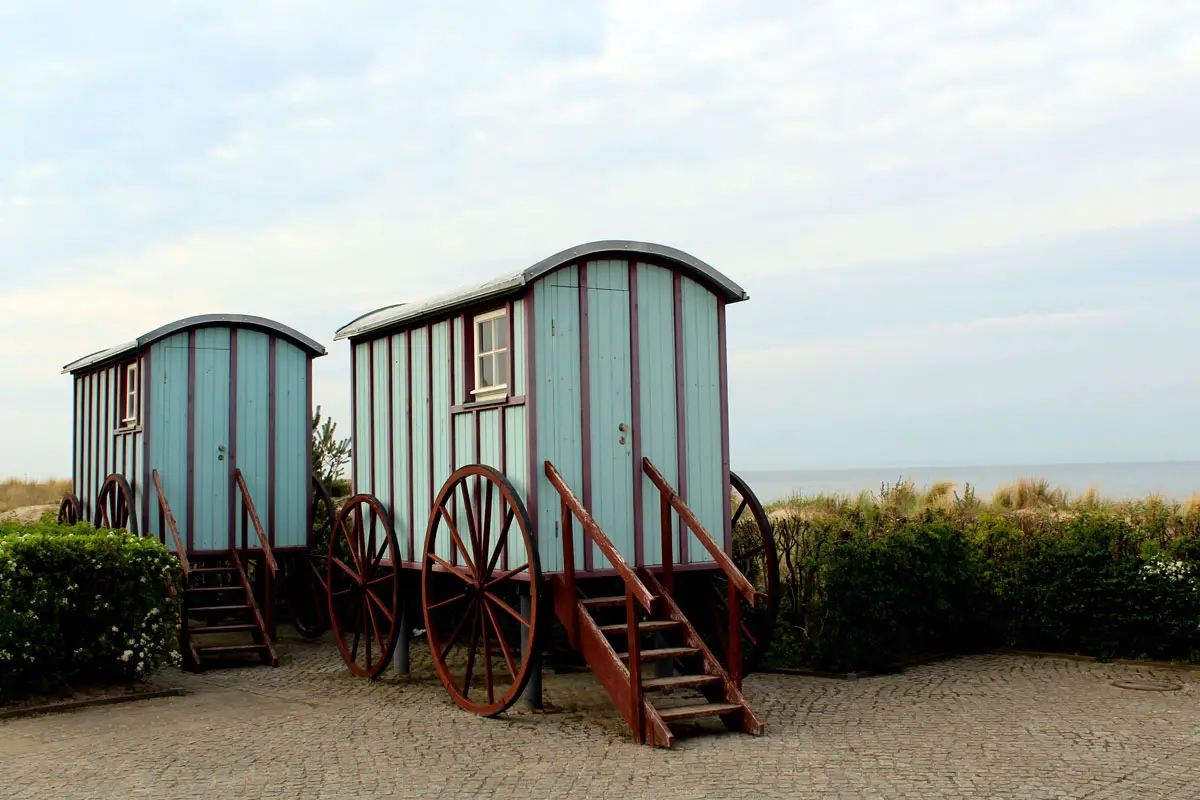 Und dann geht es direkt weiter Richtung Seebrücke. Hier liegen einige Fischerboote am Strand – und tatsächlich wird in Koserow noch frischer Fisch gefangen und unter anderem in der Koserower Salzhütte traditionell geräuchert. Und selbst wenn du gerade keinen Hunger auf Fisch hast, ist das urige Ensemble alter Fischerhütten sehenswert.